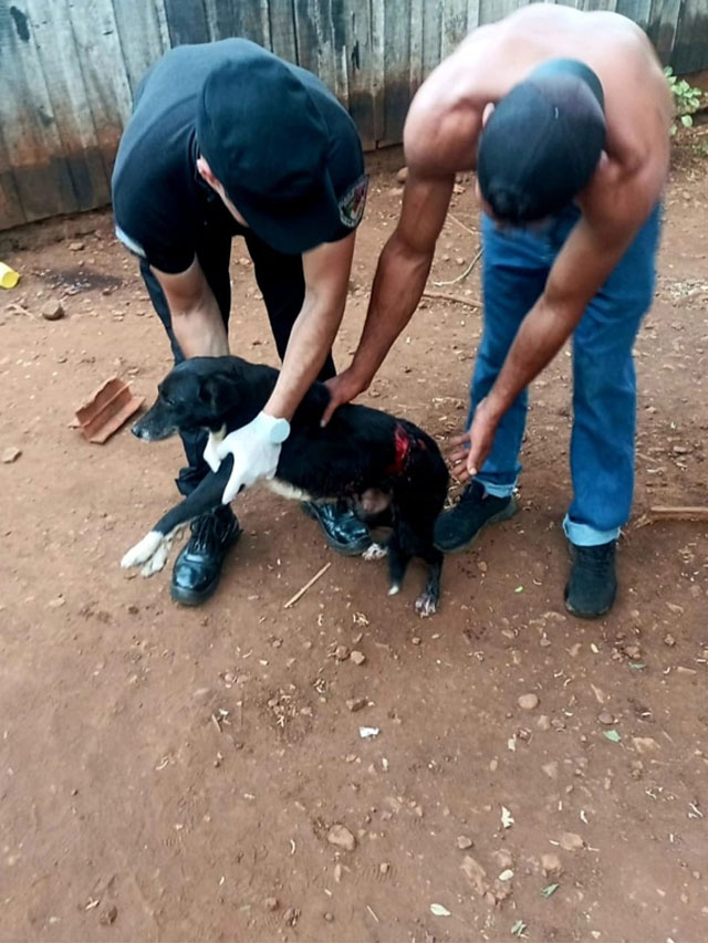 El can fue trasladado en un móvil policial hasta una veterinaria de Oberá, donde recibió atención profesional. En tanto, por disposición del juez de turno, el agresor fue detenido y el arma blanca utilizada quedó secuestrada y depositada en la dependencia policial.